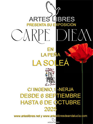 NERJA – De kunstenaarsgroep Artes Libres verzorgt van zaterdag 6 september tot maandag 6 oktober de expositie Carpe Diem in La Peña la Solea van Nerja.