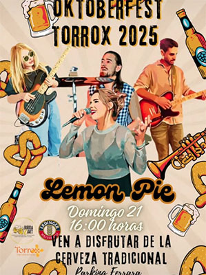 TORROX – De formatie Lemon Pie maakt zondagmiddag 21 september om 16.00 uur zijn opwachting op het jaarlijkse Oktoberfest in de kustplaats Torrox, een kleine tien kilometer onder Nerja.