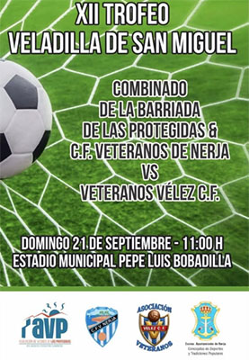 NERJA – Op de voetbalvelden van het Estadio Municipal Pepe Luis Bobadilla in Nerja wordt zondag 21 september de jaarlijkse strijd om de Veladilla de San Miguel afgewerkt. De wedstrijd gaat tussen een combinatieteam uit Nerja en een veteranenteam van Vélez CF.