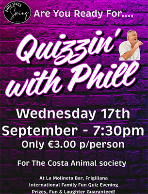 Het optreden begint rond de klok van 19.30 uur. Naast dit optreden is er tevens een quizavond in La Molineta. De entreeprijs bedraagt drie euro per persoon. Een gedeelte van de opbrengst komt ten goede aan de (dieren)stichting Costa Animal Society (CAS).
