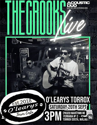 Akoestisch Duo The Crooks bij O’Leary’s in Torrox TORROX – Het akoestisch duo The Crooks treedt zaterdagmiddag 20 september op bij O’Leary’s Bar aan de Paseo Maritímo de Ferrara in Torrox-Costa. Het optreden begint om circa 15.00 uur, de toegang is vrij. Delen: Klik om te delen op X (Opent in een nieuw venster) X Klik om te delen op Facebook (Opent in een nieuw venster) Facebook Vind-ik-leuk Aan het laden...