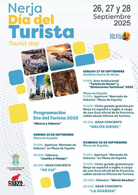 In de avonduren zijn er diverse muzikale optredens (aanvang 20.00 uur) op het het Plaza d´España. Ook op zondag 28 september staat hat Plaza d´España vanaf 11.00 uur bol van het activiteiten in het kader van de Día del Turista, op zaterdag 27 september zijn er diverse activiteiten op zowel het Plaza d´España (wederom vanaf 11.00 uur) als de tuinen van de Grotten van Nerja.