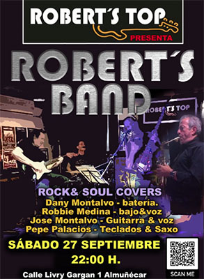 ALMUNECAR – In bar/restaurant Robert’s Top in Almuñécar staat zaterdagavond 27 september een optreden geprogrammeerd van Robert´s Band. Het optreden begint rond 22.00 uur.