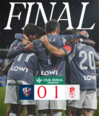 HUESCA – In de Spaanse provincie Aragón heeft de Andalusische voetbalclub Granada CF in de zevende competitieronde voor de Segunda División eindelijk de eerste overwinning van dit seizoen geboekt. In het voetbalstadion El Alcoraz van tegenstander SD Huesca werd het zondagavond 28 september 0-1.