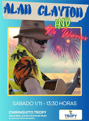CALETA DE VELEZ – In de kustplaats Caleta de Velez treedt zaterdagmiddag 1 november de Britse gitarist Alan Clayton met zijn band No Worries op. Dit gebeurt bij Chiringuito Tropy aan de Calle Real, vlakbij de jachthaven van Vélez-Málaga, Puerto Caleta de Velez.