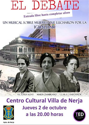 NERJA – In het Centro Cultural Villa de Nerja wordt donderdagavond 2 oktober de mucical ´El Debate´ opgevoerd. De musical in het cultureel centrum aan de Calle Granada 45 in de binnenstad van Nerja duurt een kleine anderhalf uur en begint om 20.00 uur.
