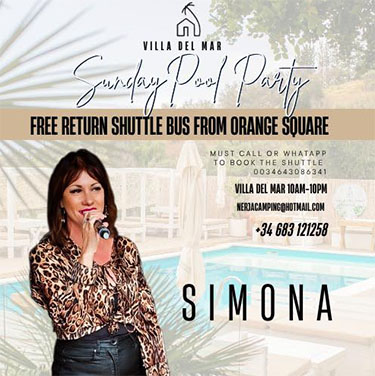MARO – De zangeres Simona Pittari treedt zondagmiddag 5 oktober op bij camping Villa del Mar in Maro (aan de kust naast Nerja gelegen). Het optreden is vrij toegankelijk en duurt van circa 13.00 uur tot ongeveer 16.00 uur.
