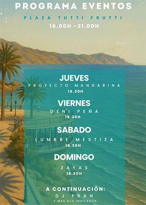 NERJA – Het uitgaansplein Tutti Frutti wordt komende week meer dan ooit betrokken bij het jaarlijkse Feria de Nerja. Van donderdag 9 tot en met zondag 12 oktober zijn er iedere dag optredens bij te wonen op het plein.