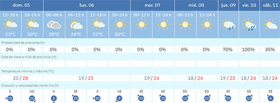 NERJA – Het blijft de komende dagen warm qua temperaturen in Nerja en omgeving, waarbij de meteorologische dienst Aemet (Agencia Estatal de Meteorología) in haar jongste voorspellingen regen verwacht aan het einde van deze week.