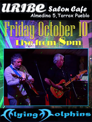 TORROX – Bij Uribe Salon Cafe in de kustplaats Torrox (een kleine tien kilometer onder Nerja gelegen) treedt vrijdagavond 10 oktober de uit Nerja afkomstige en regionaal populaire band Flying Dolphins op.