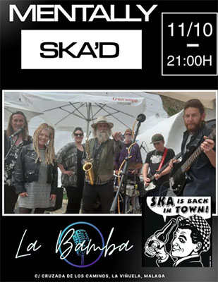 LA VINUELA – Bij bar La Bamba in het Axarquía-dorp La Viñuela, naast het gelijknamige meer landinwaarts boven Vélez-Málaga, staat zaterdagavond 11 oktober een optreden gepland van de formatie Mentally Ska´D.