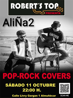ALMUNECAR – Bij bar/restaurant Robert’s Top in de kustplaats Almuñécar staat zaterdagavond 11 oktober een optreden geprogrammeerd van het Duo AliÑa 2. Het optreden begint rond 22.00 uur.