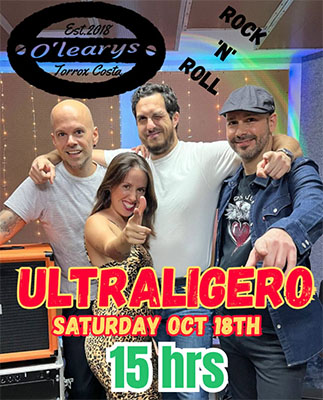 TORROX – De band Ultraligero treedt zaterdagmiddag 18 oktober voor de eerste keer op bij O’Leary’s Irish Bar aan de Paseo Marítimo de Ferrara van de kustplaats Torrox, circa tien kilometer van Nerja gelegen.