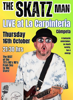 COMPETA – De regionaal bekende artiest The SkatzMan treedt donderdagavond 16 oktober op bij La Carpinteria Bar in het Axarquía-dorp Cómpeta. Het optreden begint rond 21.30 uur.