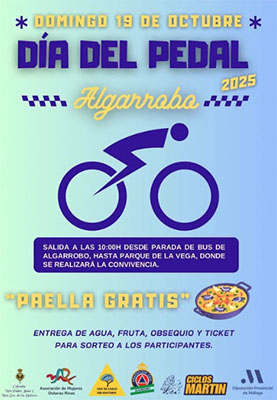 De Algarrobo-editie begint zondag 19 oktober om 10.00 uur bij het lokale busstation en leidt naar het Parque de la Vega. Snelheid is tijdens een Día del Pedal niet belangrijk, deelname en originaliteit is waar het om draait. Wél is het dragen van een helm (voor kinderen jonger dan zestien jaar) verplicht.