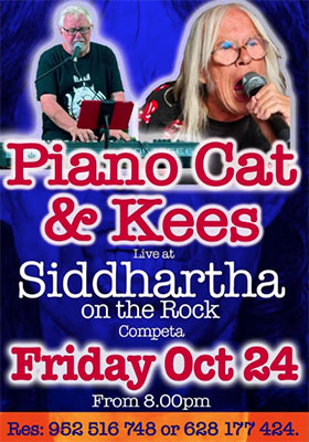CÓMPETA – In de het bergdorp Cómpeta treedt vrijdagavond 24 oktober het duo Piano Cat & Kees op. Dit gebeurt bij bar Siddhartha aan de Calle Aguacate 2.