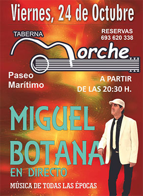 EL MORCHE – De Spaanse zanger Miguel Botana treedt vrijdagavond 24 oktober op bij Taberna El Morche in de gelijknamige kustplaats aan de N-340 tussen Nerja en Málaga.