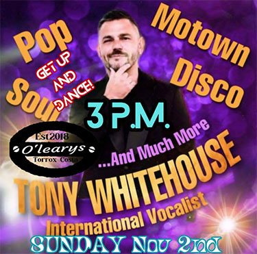 TORROX – De Britse zanger Tony Whitehouse treedt zondagmiddag 2 november op bij O’Leary’s Irish Bar in de kustplaats Torrox.