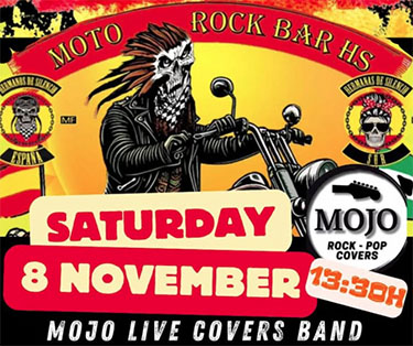 CANTARRIJÁN – Bij de Moto Rock Bar, langs de N-340 tussen Nerja en La Herradura, even voor het plaatsje Cantarriján, treedt zaterdagmiddag 8 november de band Mojo op.