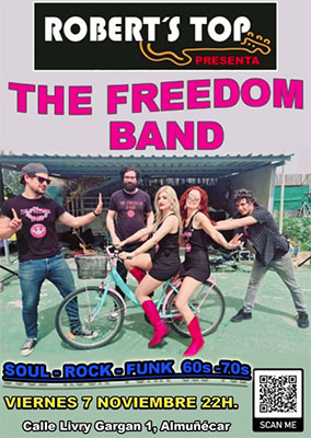 ALMUÑÉCAR – Bij bar/restaurant Robert’s Top in Almuñécar staat vrijdagavond 7 november een optreden geprogrammeerd van The Freedom Band. Het optreden begint rond 22.00 uur en duurt tot circa middernacht.
