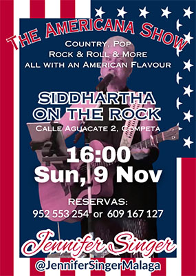 CÓMPETA – In de het Axarquía-bergdorp Cómpeta treedt zondagmiddag 9 november de zangeres Jennifer Singer met haar ´American Show´ op. Dit gebeurt bij bar Siddhartha on the Rock aan de Calle Aguacate 2.
