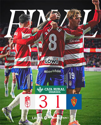 GRANADA – In het eigen stadion Nuevo Los Cármenes heeft voetbalclub Granada CF zich zondagavond 9 november naar een moeizame 3-1 overwinning geknokt op tegenstander Real Zaragoza. Door deze winst werkte de noodlijdende Andalusische formatie zich iets omhoog op de ranglijst voor de Spaanse Segunda División.