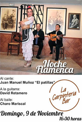 CÓMPETA – Bij La Carpinteria Bar in het Axarquía-dorp Cómpeta staat zondag 9 november een zogeheten Noche Flamenca op het programma. Deze begint om 16.30 uur.