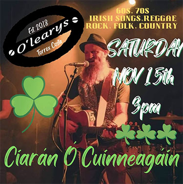 TORROX – De Ierse zanger en gitarist Cíarán Ó´Cuínneagáin treedt zaterdagmiddag 15 november op bij O’Leary’s Irish Bar aan de Paseo Maritímo de Ferrara in de kustplaats Torrox.