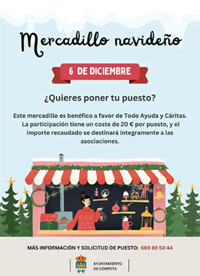 Het bergdorp Cómpeta ligt op ruim zeshonderd meter hoogte en circa vijftien kilometer landinwaarts vanaf de kustplaats Torrox. De opbrengsten van de kerstmarkt komen ten goede aan de stichtingen Todo Ayuda y Cáritas. De markt duurt van circa 12.00 tot ongeveer 16.00 uur.
