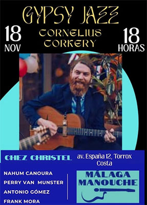 TORROX-COSTA – Bij bar Chez Christel in de kustplaats Torrox-Costa staat dinsdagavond 18 november een optreden van de Gypsy Jazz- en Swingband Malaganouche op het programma.