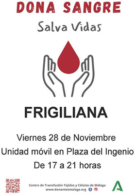 Mensen die bloed willen doneren kunnen tussen 17.00-21.00 uur terecht in het mobiele station aan het Plaza del Ingenio van Frigiliana. Het vooraf maken van een afspraak is raadzaam, dit kan via de telefoonnummers +34 951 034 120 en +34 951 034 121 (tussen 11.00 en 14.00 uur) óf via de website http://www.donantesmalaga.org .