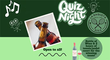 NERJA – In het restaurant van het tennis- en paddlepark La Raqueta aan de N-340 in Nerja (bovenaan de afslag naar Playa Burriana) staat woensdagavond 26 november een zogeheten quiz-night op het programma.