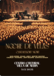 NERJA – In het Centro Cultural Villa de Nerja staat vrijdagavond 5 december een zogeheten Candlelight Night op het programma. De show in het cultureel centrum aan de Calle Granada 45 in de binnenstad van Nerja duurt een kleine anderhalf uur en begint om 20.00 uur.