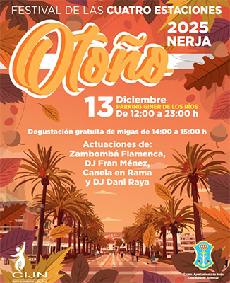 NERJA – De stad Nerja sluit over anderhalve week de herfst af met de Otoño-aflevering van het Fiesta de las Cuatro Estaciones (het feest van de vier jaargetijden, red.) op de parkeerplaats Giner los Rios in het centrum van de stad. Dit gebeurt op zaterdag 13 december van 12.00 uur tot 23.00 uur.