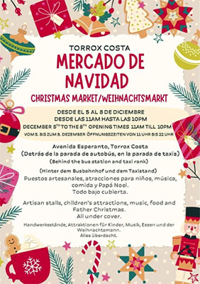TORROX – In de kustplaats Torrox (en kleine tien kilometer onder Nerja gelegen) wordt van vrijdag 5 tot en met maandag 8 december een kerstmarkt gehouden. Deze is te vinden aan de Avenida Esperanto in Torrox Costa.