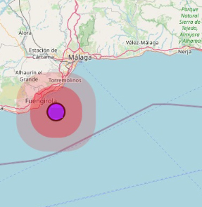 Het episch centrum van de schok lag een kilometer verwijderd van de plaats Fuengirola. De beving vond plaats rond 11.30 uur in de ochtend, de trillingen waren onder meer voelbaar de in op tien kilometer afstand van Nerja gelegen kustplaats Torrox. Van eventuele schade of persoonlijke ongelukken is op het moment van publiceren van dit bericht niets bekend.