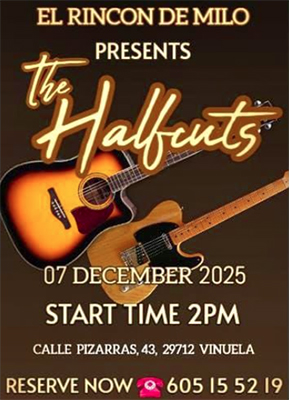 LA VIÑUELA – De formatie The Halfcuts treedt zondagmiddag 7 december op bij restaurant/bar Rincón el Milo in het dorp La Viñuela, gelegen naast het gelijknamige meer in de Axarquía-regio.