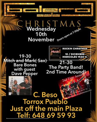 De Sala Bolero is gevestigd aan de Calle Jaleo van Torrox, het optreden begint rond 21.30 uur. Voorafgaand is er een optreden van het saxofoonduo Bare Bones (vanaf 19.30 uur).