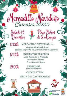 COMARES – In het bergdorp Comares kan zaterdag 13 december vanaf 12.00 uur een kerstmarkt (Mercadillo Navideño) worden bezocht, welke vanaf 17.00 uur wordt opgeluisterd met optredens van diverse koren uit de Axarquía-regio.