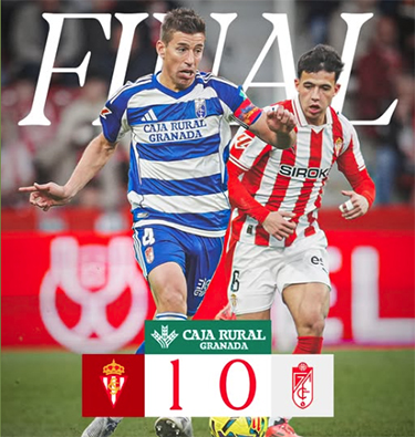 GIJÓN – In Gijón kreeg de Andalusische voetbalclub Granada CF zaterdagmiddag 13 december in de slotminuut van het uitduel tegen Sporting de Gijón een forse domper te verwerken. César Gelabert werkte in de ultieme slotfase van de wedstrijd namens de thuisclub de enige én winnende treffer binnen (1-0) waardoor Granada met lege handen huiswaarts moest keren.