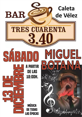 CALETA DE VÉLEZ – In het kustplaatsje Caleta de Vélez treedt zaterdagavond 13 december de Spaanse zanger Miguel Botana op.