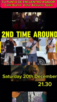 ALCAUCÍN – Bij Tu Punto de Encuentro Asador in Alcaucín treedt zaterdagavond 20 december de band 2nd Time Around op. Het optreden begint om circa 20.00 uur.
