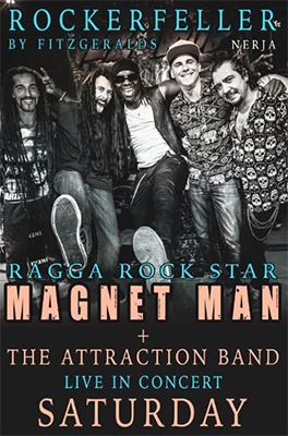 NERJA – De ´raggae rock star´ Magnet Man and The Attraction Band treedt zaterdagavond 20 december op bij discotheek Rockefeller by Fitzgerald´s in Nerja, in het centrum van de stad aan de Calle El Chaparil 7.