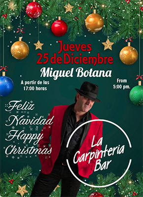 CÓMPETA – De Spaanse zanger Miguel Botana treedt donderdag 25 december op bij La Carpinteria Bar in het Axarquía-dorp Cómpeta. Het optreden begint rond 17.00 uur.