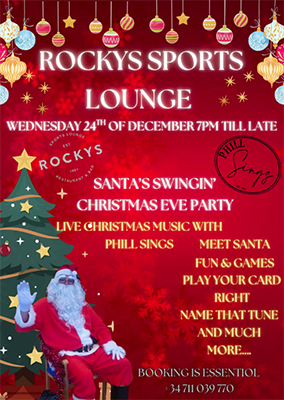 NERJA – Bij Rocky’s Bar in Nerja treedt woensdagavond 24 december (kerstavond) de artiest Phil Sings Swing op. Het optreden begint ronde de klok van 19.00 uur.