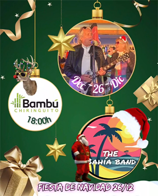 LA HERRADURA – The Bahía Band treedt vrijdagavond 26 december op bij Chiringuito El Bambú tijdens een Fiesta de Navidad, aan de Paseo Andrés Segovia in de kustplaats La Herradura.
