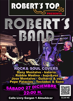 ALMUÑÉCAR – In bar/restaurant Robert’s Top in Almuñécar staat zaterdagavond 26 december een optreden geprogrammeerd van Robert´s Band. Het optreden begint rond 22.00 uur.