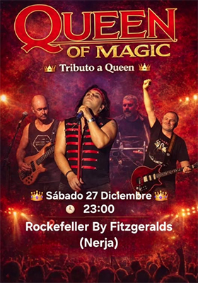 NERJA – De coverband Queen of Magic treedt zaterdagavond 27 december op bij Sala Rockefeller by Fitzgerald´s, in het centrum van Nerja aan de Calle El Chaparil 7.