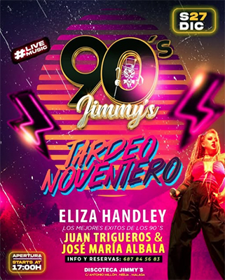 NERJA – De zangeres Eliza Handley treedt zaterdagavond 27 december op bij discotheek Jimmy´s aan de Calle Antonio Millón 6 in het centrum van Nerja.