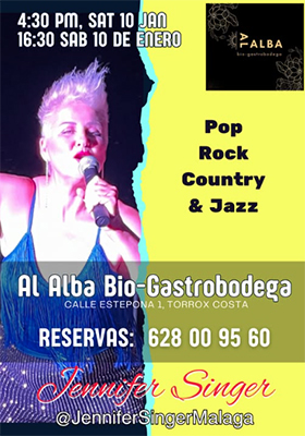 TORROX – In de kustplaats Torrox, op circa tien kilometer afstand van Nerja, treedt zaterdagmiddag 11 januari de zangeres Jennifer Singer op.